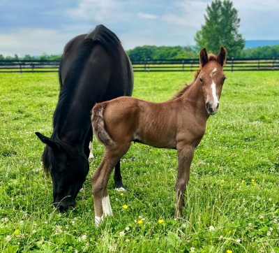 We welcomed two beautiful chestnut fillies into the world! One by Crown Ridge Indiana Joves out of Maple Side Demitasse and one by Crown Ridge Magic Trick out of Northwind Martinique.