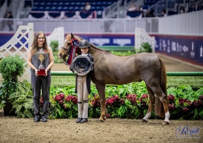 A big congratulations to Crown Ridge Finnegan & Penelope Morassutti for winning the 2025 Berylyn Tamarak Perpetual Trophy. This award is generously donated by Kelly Traver and is awarded to the top Canadian-bred pony at the Royal out of all the smalls, mediums, and larges!